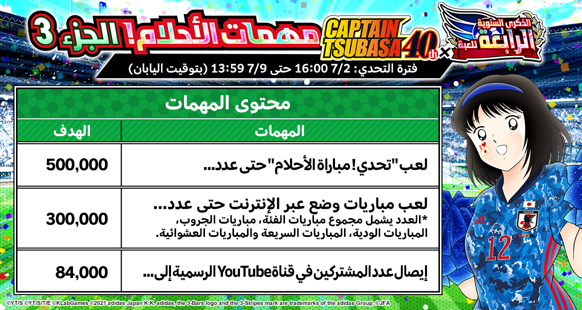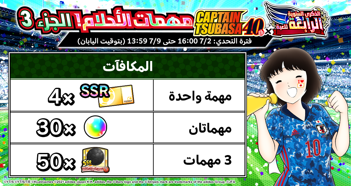 – الهدايا سترسل إلى جميع لاعبي Captain Tsubasa: Dream Team.