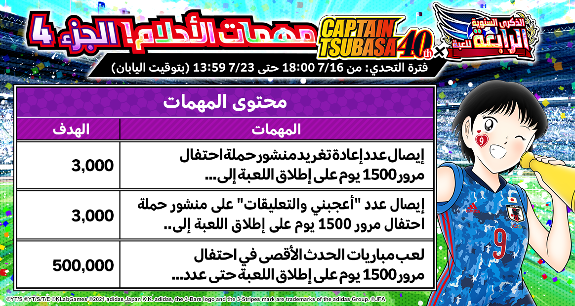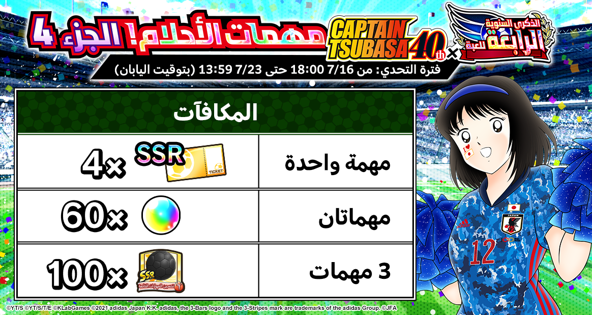 – الهدايا سترسل إلى جميع لاعبي Captain Tsubasa: Dream Team.