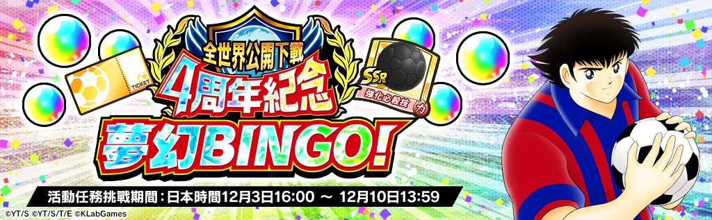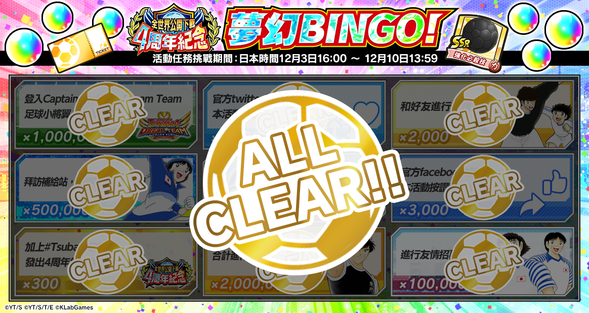 BINGO的結果將會刊登在『Captain Tsubasa: Dream Team 足球小將翼 夢幻隊伍』的官方社群平台上!
