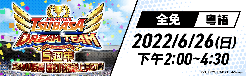 《足球小將翼:夢幻隊伍》不知不覺已經推出了5年,為了答謝各位玩家,將會舉行一次「線上見面會」,今次的活動陣容非同小可,將會邀請到Youtuber JAPHK擔當活動主持,現場除了會分享遊戲的最新資訊外,也會舉行一些小遊戲,有問答比賽;猜猜角色,以及其他互動小遊戲。