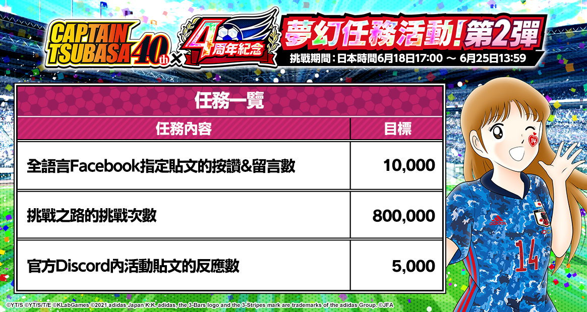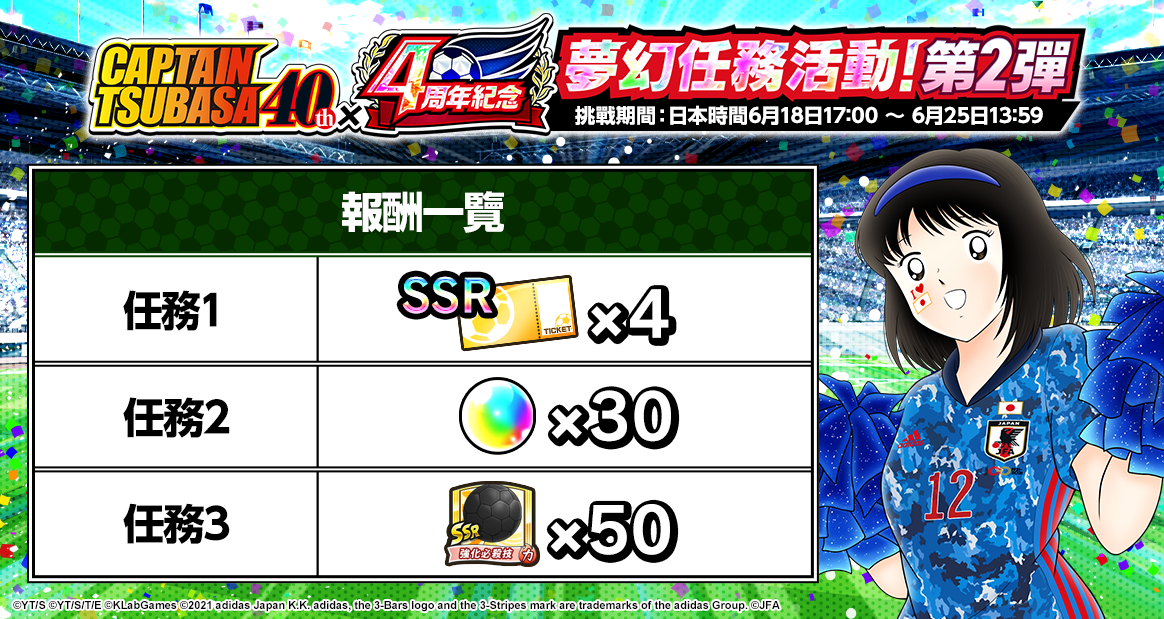 ・活動報酬將會發送給所有足球小將翼: 夢幻隊伍的玩家