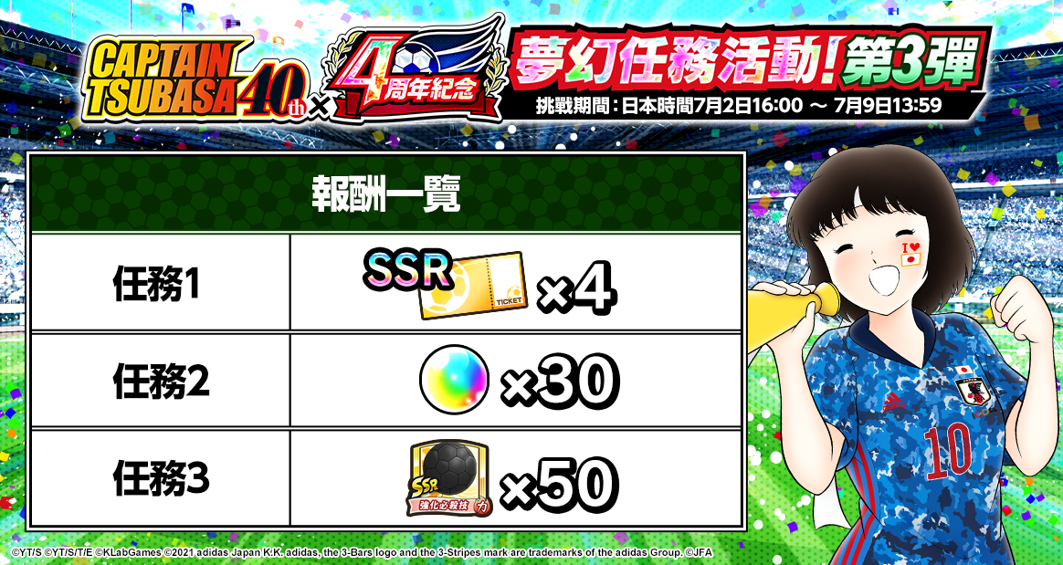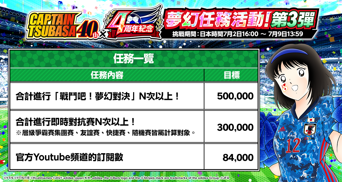 ・活動報酬將會發送給所有足球小將翼: 夢幻隊伍的玩家