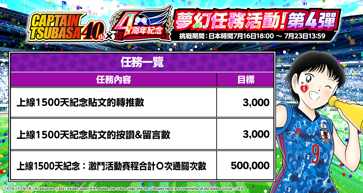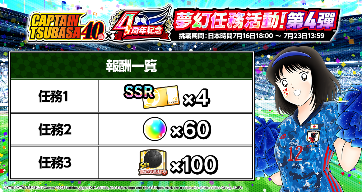 ・活動報酬將會發送給所有足球小將翼: 夢幻隊伍的玩家